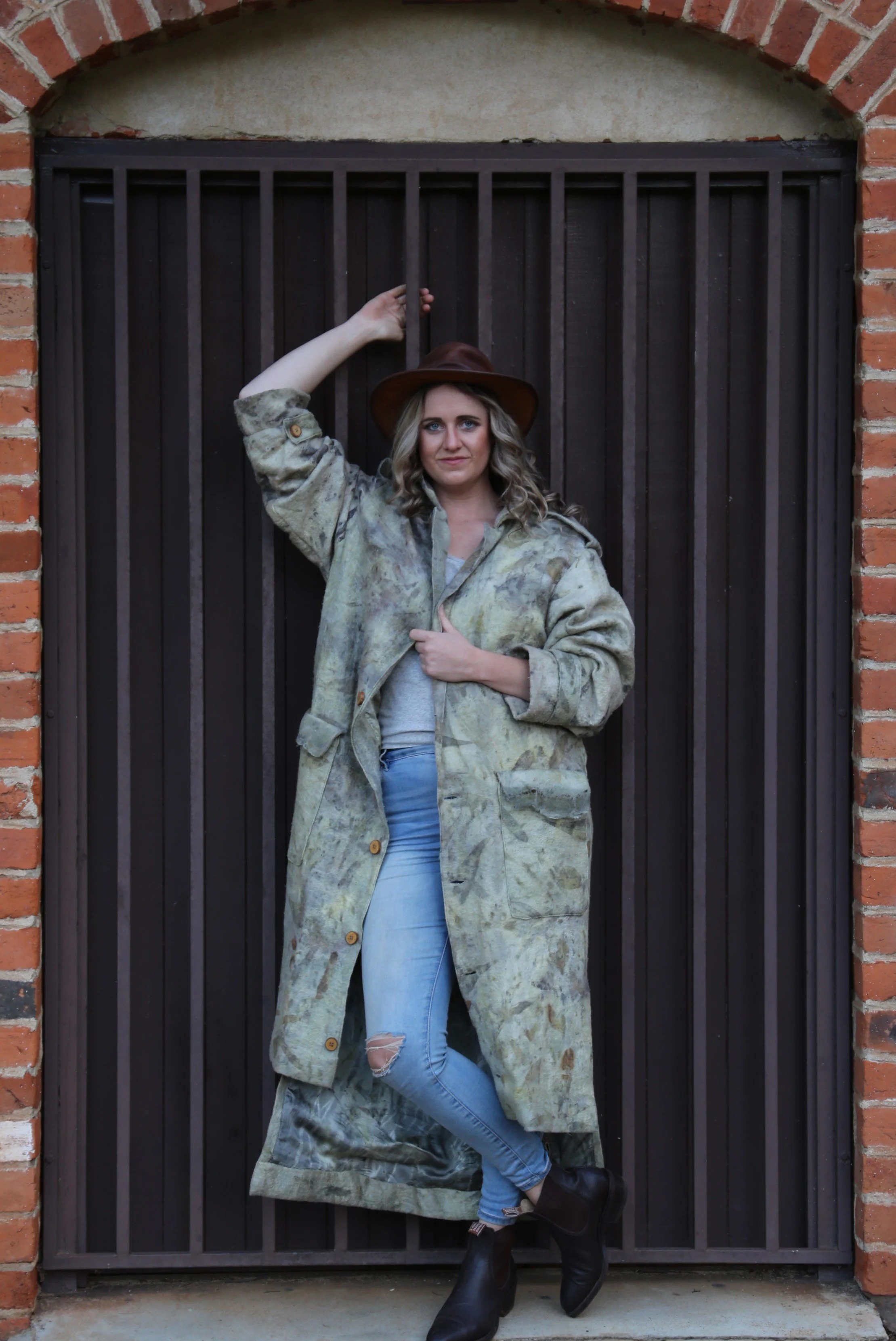 The Fabric of Nature label is about showing an appreciation and connection to natural environments through the types of techniques, materials and garment design. Naturally dying fabric with eucalyptus leaves is a meaningful part of the label's aesthetic. The trees leaves a direct memory from the natural environment, telling a story on the garment. Using tissue silks that are naturally dyed acts to mirror the fragility of our natural environments and bring awareness of the human impacts we can have on our them. I also explore upcycling and recycling materials. Previously I used more heavy work wear clothing like denim and flannel shirts as a contrast to the silks. I deconstruct and reconstruct recycled work wear that are worn, faded and bleached from the sun. The fabric tells a story of its past life working in the outdoors, but is also creating a new life for the worn out clothing saving it from going to landfill.