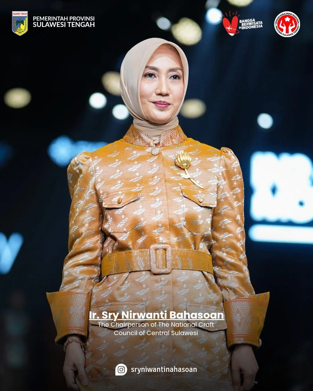 Born in Makassar, Ir. Sry Nirwanti Bahasoan is the head of the Family Welfare Movement of Central Sulawesi and plays important role in all aspects of family welfare , starting from clothing, food, housing, education, health and environment. She is also Chairperson of the National Craft Council of Central Sulawesi. Sry Nirwanti is passionate about empowering people, fashion, and sustainability, driving initiatives that support creative industries and local artisans.